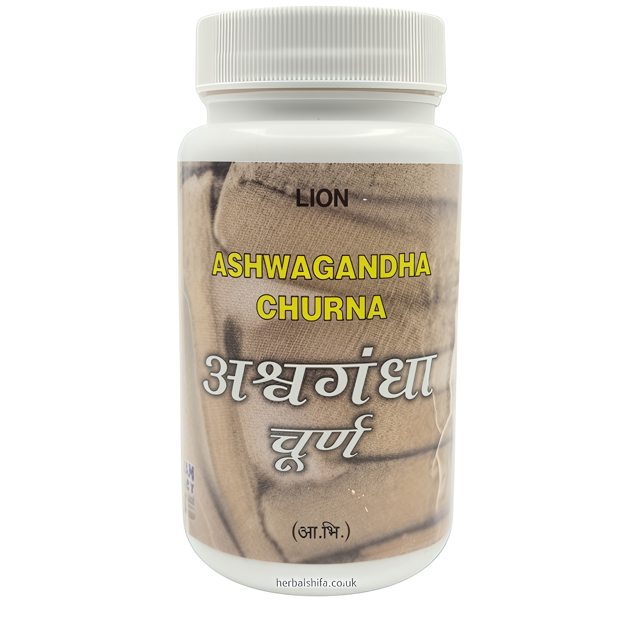 Ashwagandha Churna (Powder) Lion is a powerful Ayurvedic medicine known for its many health benefits. This natural supplement is designed to relieve stress, helping you feel more relaxed and balanced. It is also effective in managing anxiety and depression, making it easier to handle life’s challenges. Ashwagandha supports the brain and nervous system, enhancing their functions for better mental clarity and focus. Additionally, it has anti-inflammatory properties that can help reduce swelling and lower blood pressure. By supporting the immune system, this powder helps boost your overall health and strength. Regular use of Lion Ashwagandha Churna (Powder) can lead to improved energy levels and a sense of well-being. It is ideal for anyone looking for a natural way to manage stress and enhance their health. Incorporate this powerful powder into your daily routine for better mental and physical health.