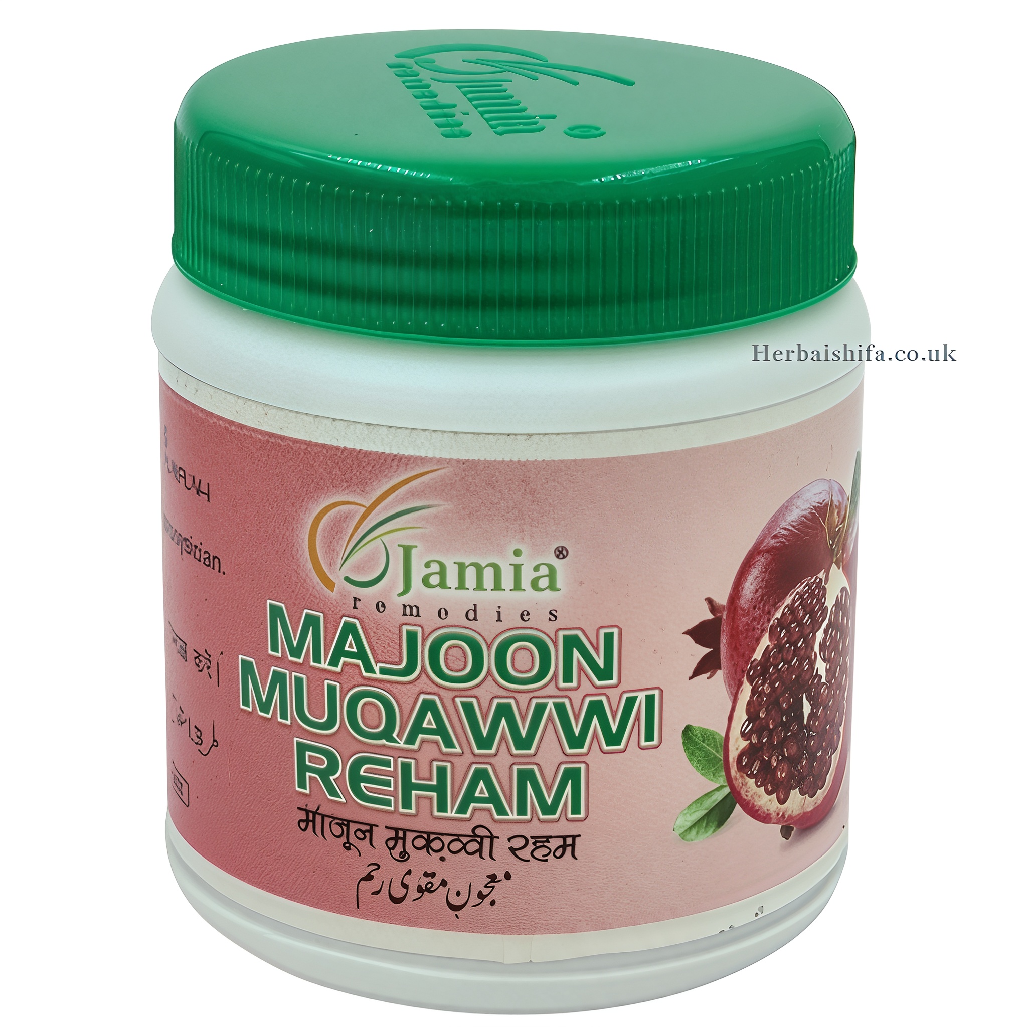 Majoon Muqawwi Reham by Jamia is designed to support womenās reproductive health and overall well-being. It helps strengthen the uterus and ovaries, promoting balanced uterine function and regular cycles. Majun Muqawwi Reham is also beneficial for managing issues related to leucorrhoea and other common female concerns. By nourishing and toning the reproductive organs, it supports natural hormonal balance and helps maintain internal strength. Regular use may assist in improving vitality and comfort during different stages of a womanās life. Majoon Muqawwi Reham offers a holistic approach to womenās care, focusing on inner balance, uterine health, and overall energy. It is an ideal herbal supplement for maintaining a healthy reproductive system and promoting long-term wellness.