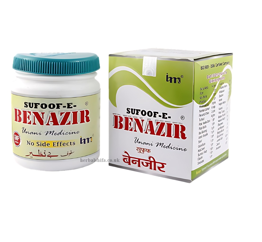 Sufoof E Benazir Powder by IMC is designed to support overall wellness and digestive health. It is useful in managing obesity and helps in reducing constipation, nausea, and indigestion. The powder works to relieve discomfort from piles and supports kidney and bladder function, while also aiding in liver disorders. It improves digestion and enhances appetite, making it easier to maintain a healthy diet. Sufoof E Benazir also boosts immunity, helping the body fight common ailments, and supports detoxification, which promotes overall balance and vitality. Regular use can help increase energy levels, improve strength, and support weight management naturally, making it an effective option for those looking to maintain good health and enhance their daily well-being.